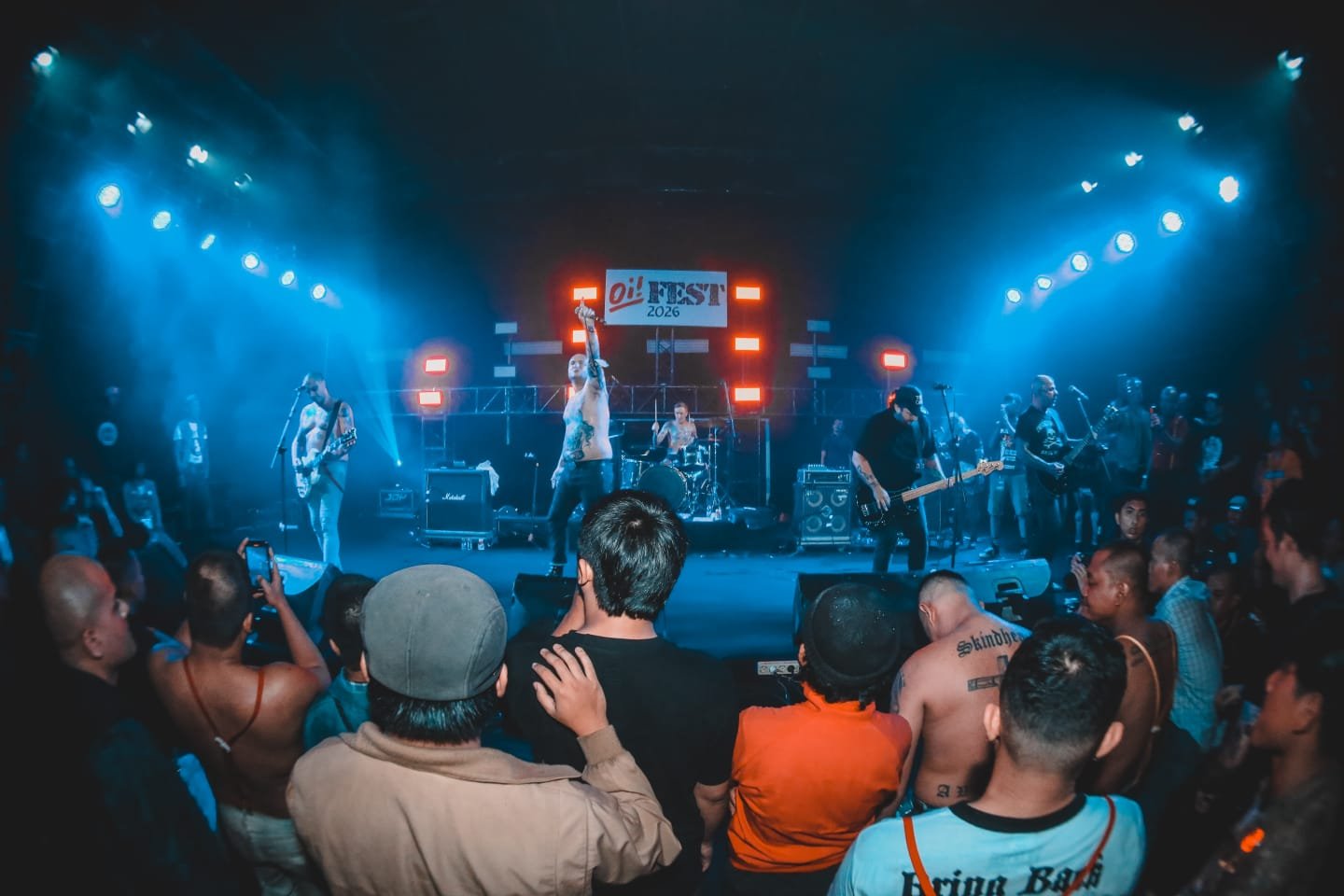 unitymagz.com – Oi Fest 2026 kembali membuktikan eksistensinya sebagai salah satu perayaan musik Oi yang konsisten di Indonesia. Acara ini digelar di Gedung Produksi Film Negara (PFN) Heritage di Jalan Otista Raya, Bidara Cina, Jatinegara, Jakarta Timur pada Sabtu (24/1/2026) malam, atas kolaborasi dan dimotori oleh Warrior Jakarta, Stay Punk Music, dan Smartes Bomb Records, dengan menghadirkan atmosfer yang padat, riuh, dan penuh semangat persaudaraan khas Oi.