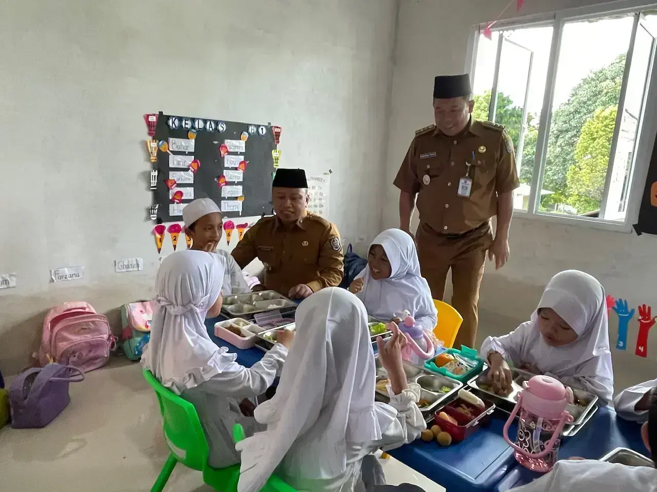 Dalam kunjungan tersebut, Supian Suri didampingi Camat Bojongsari, Suryana Yusup, menyapa anak-anak PAUD yang tampak antusias dan lahap menyantap Makan Bergizi Gratis (MBG) yang disediakan.